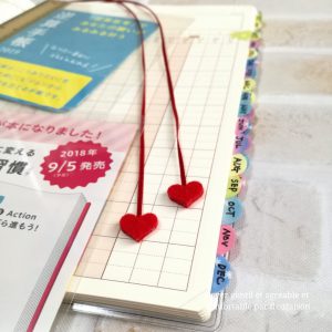 材料だけ揃えて、手付かずになっていた 「真っ赤なハート形のしおり」も付けました。 そして、今年版にもつけていましたが、インデックスも。